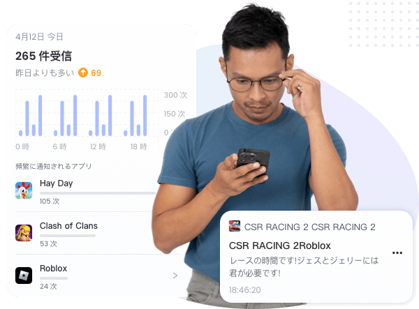 通知監視アプリは、デバイスで受信した通知を追跡・管理するために設計されたソフトウェアツールです。この種のアプリにより、ユーザー、特に親御さんは、お子さんがスマートフォンで受信するアラートやメッセージについて常に情報を得ることができます。AirDroid Parental Controlはこのような通知監視アプリで、主な機能は以下の通りです。 1) リアルタイム監視: テキスト、ソーシャルメディアの更新、アプリの通知、着信通知など、受信した通知を即座に表示します。2) アラート: 特定のアプリや特定の種類の通知からアラートを受け取ります。3) リモートアクセス: 保護者の所在地に関係なく、お子さんのスマートフォンの通知を監視できます。4) 安全性とセキュリティ: ネットいじめ、不適切なコンテンツ、見知らぬ人とのやりとりなど、潜在的なリスクの検知と対応を支援します。5) アクティビティインサイト: お子さんのデジタルでの交流の概要を提供し、保護者がお子さんのオンライン行動を理解するのに役立ちます。