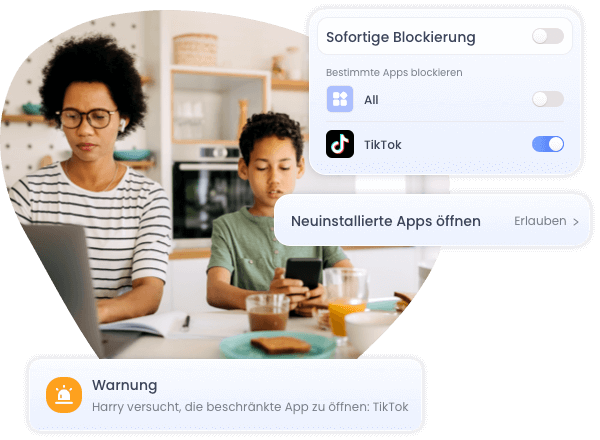 - Bleiben Sie mit Echtzeit-Warnungen auf dem Laufenden, wenn Ihr Kind versucht, auf eine gesperrte App zuzugreifen, oder eine neue App installiert.