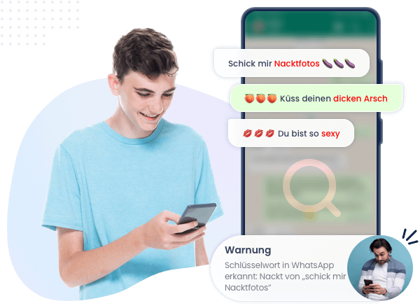 - Erhalten Sie Benachrichtigungen, wenn explizite Schlüsselwörter in Chats, beim Surfen, in Posts oder Suchanfragen auf dem Telefon Ihres Kindes erscheinen.