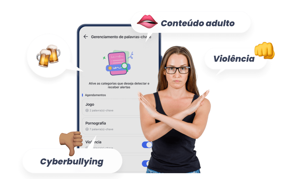 - Detecção de palavras-chave em redes sociais: O sistema detecta e alerta os pais se forem usadas palavras-chave relacionadas a apostas, jogos de azar ou vício em aplicativos de mensagens e redes sociais.
