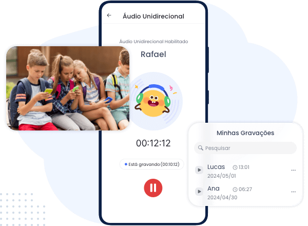 Para ouvir o que está acontecendo ao redor do seu filho, você pode usar o AirDroid Parental Control para ativar remotamente o microfone do celular dele. Depois que o AirDroid Kids estiver instalado no celular do seu filho, você poderá ativar o microfone dele. Você também pode gravar os sons do ambiente em torno do seu filho. E ao salvar tudo para ouvir mais tarde, você poderá ouvir tudo o que aconteceu quando quiser. Dessa forma, você pode descobrir a verdade e salvar o que precisa quando necessário.