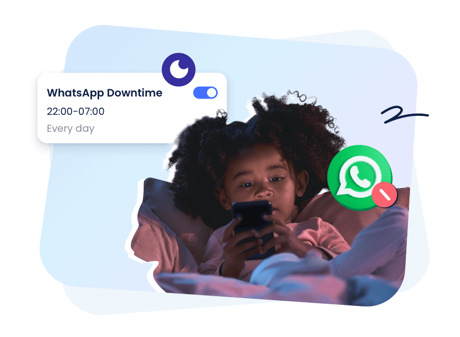 Set WhatsApp downtime or set app daily time limits. For those under 13, you can also block WhatsApp with one-click to avoid unwanted contacts.
