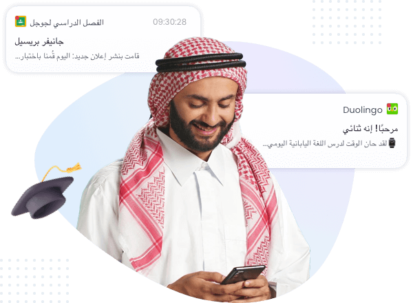 مزامنة الإشعارات من التطبيقات التعليمية لمراقبة تقدم طفلك، واستلام تذكيرات بالدورات، وتتبع تسليم الواجبات، مما يعزز الإشراف ويعزز كفاءة التعلم.