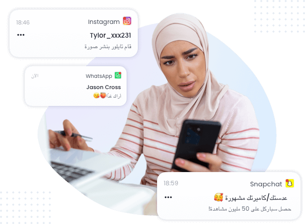 قم بمزامنة الإشعارات من منصات الدردشة ووسائل التواصل الاجتماعي الشهيرة مثل سناب شات وإنستغرام وواتساب وMessenger. افهم عاداتهم الاجتماعية وعلاقاتهم، وحدد بسرعة أي علامات على مشكلات اجتماعية أو تنمر إلكتروني.